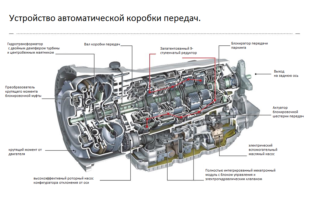 Рассмотрим основные составляющие автоматической коробки передач, а также принцип их работы.