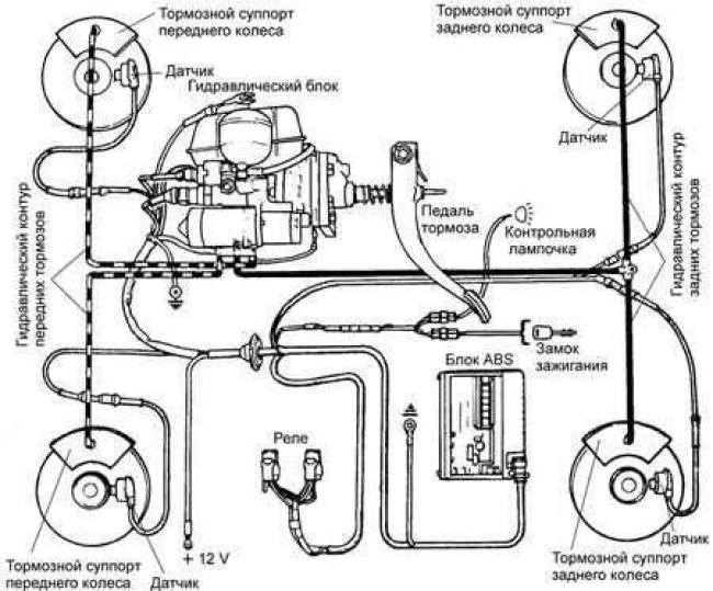 Схема антиблокировочной системы тормозов ABS (на фото 1).