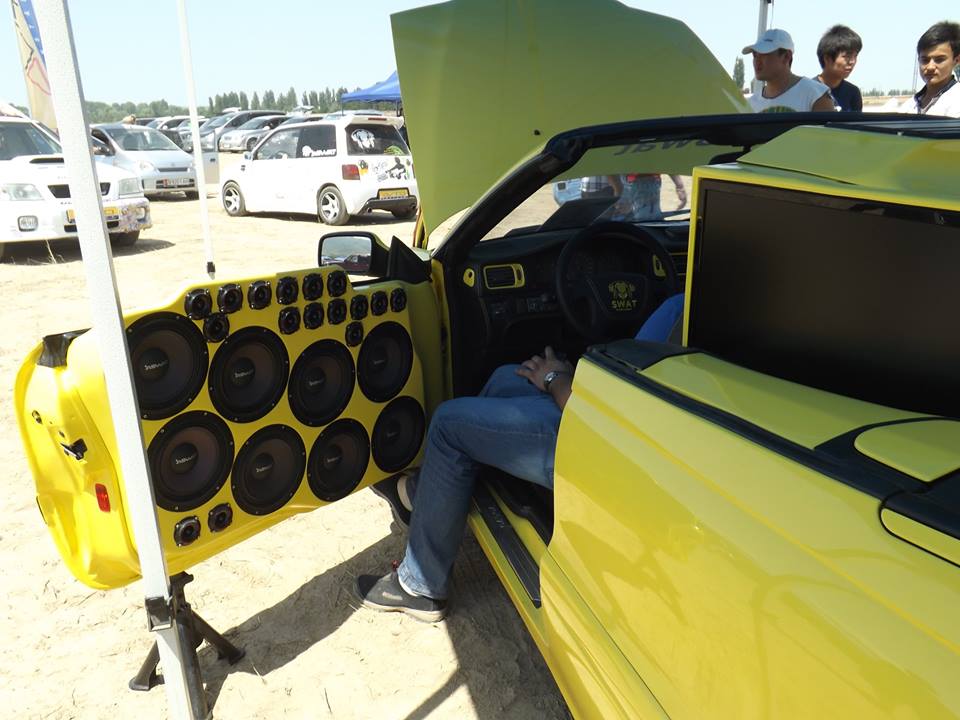На площадке автозвука было громче всех. На стенде ребят из Avtoinstall.kg ярко желтел их новый проект — Volvo SWAT, состоящий из динамиков и усилителей. На одной лишь двери авто — более 20 динамиков и «пищалок». Второй, пассажирский, ряд отсутствует, его место заняли большие динамики, а багажный отсек забит усилителями и сабвуферами. Не машина, а дискотека на колесах!