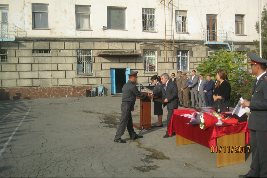 Глава Первомайского акимиата Аскербек Алиев поздравил сотрудников УВД своего района. Особо отличившихся милиционеров наградили почетными грамотами мэрии столицы, а также благодарственным письмом мэра Албека Ибраимова и почетными грамотами муниципальной администрации. От имени главы района этому УВД была оказана финансовая помощь в размере 100 000 сомов и вручен компьютер.