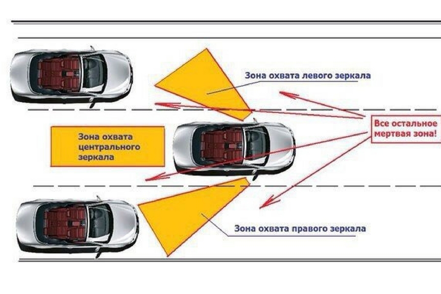 Для того чтобы определить, где у вашего автомобиля находится эта зона, есть два несложных способа. В первом случае можно попросить помощника обойти вокруг машины, и те участки, когда вы потеряли его из виду, и будут являться этой зоной. Можно оценить зону, находясь в пробке. Заметим, что в этом случае ваш автомобиль должен стоять, а соседние ряды — ехать. Наблюдая в зеркала, заметьте, где исчезнет рядом идущий автомобиль. Там и начинается «мертвая» зона, а заканчивается тогда, когда этот же автомобиль покажется из-за боковой стойки, и вы увидите его периферическим боковым зрением. В целях безопасности можно этот эксперимент проводить, находясь в припаркованном у обочины автомобиле.