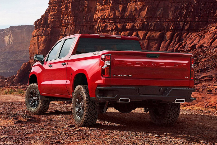 У пикапа полностью поменялся дизайн передней части кузова – его в компании называют «крутым и современным». У Silverado появились светодиодные фары головного света и другая решетка радиатора. Изменились задние фонари, задний бампер с интегрированными подножками и прямоугольными двойными патрубками выпускной системы, а также крышка багажного отсека с большой надписью Chevrolet.