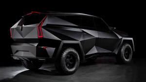 Дизайн внедорожника привлекает острыми гранями и углами. Дополнительная броня существенно увеличила массу автомобиля: с 4,5 до 6 тонн. При таком внушительном весе Karlmann King может разогнаться до 140 км/час.