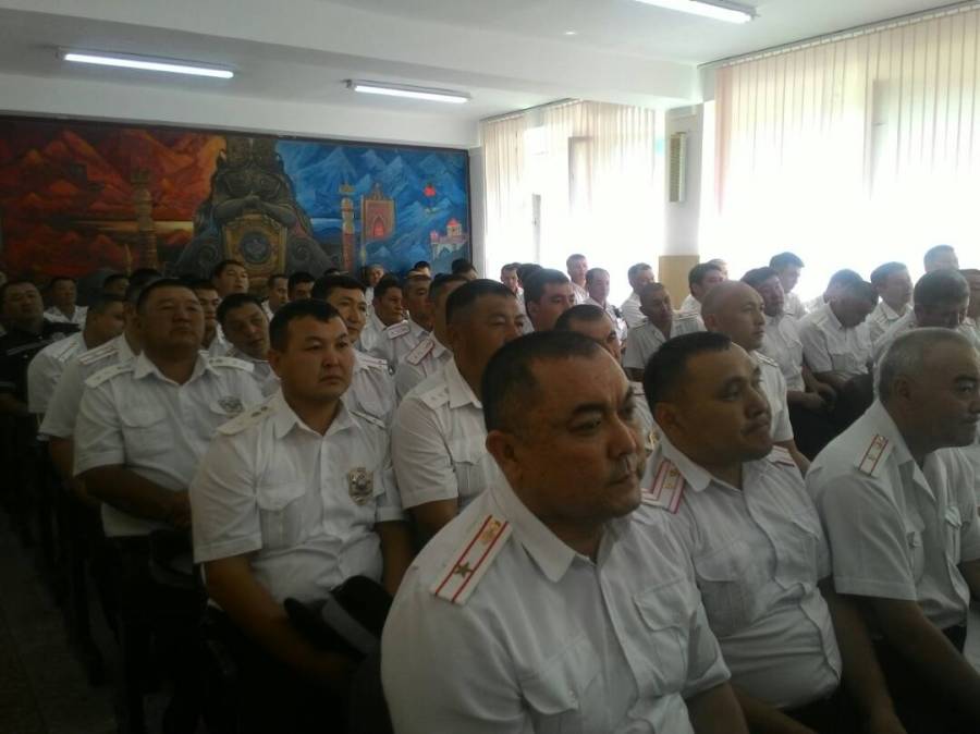 «Поздравляю всех с праздником, желаю здоровья и долголетия. Вы — лицо государства, на ваших плечах лежит огромная ответственность по наведению порядка», — сказал в поздравительной речи представитель Государственного управления автотранспортного предприятия Управления делами президента при ПКР.