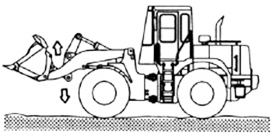 Проведите такие рабочие движения машины, как перемещение и поворот, а также выполните движения элементов рабочего оборудования (стрела, ковш) с целью обеспечения достаточной смазки всех функциональных элементов машины.