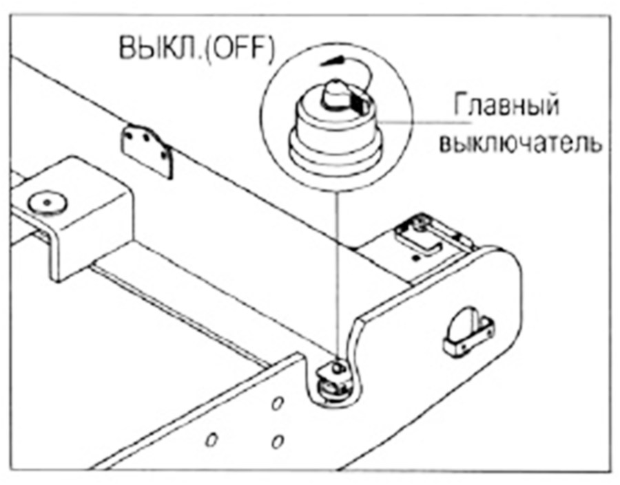 Храните машину, повернув главный выключатель, расположенный на задней раме, в положение «выкл».