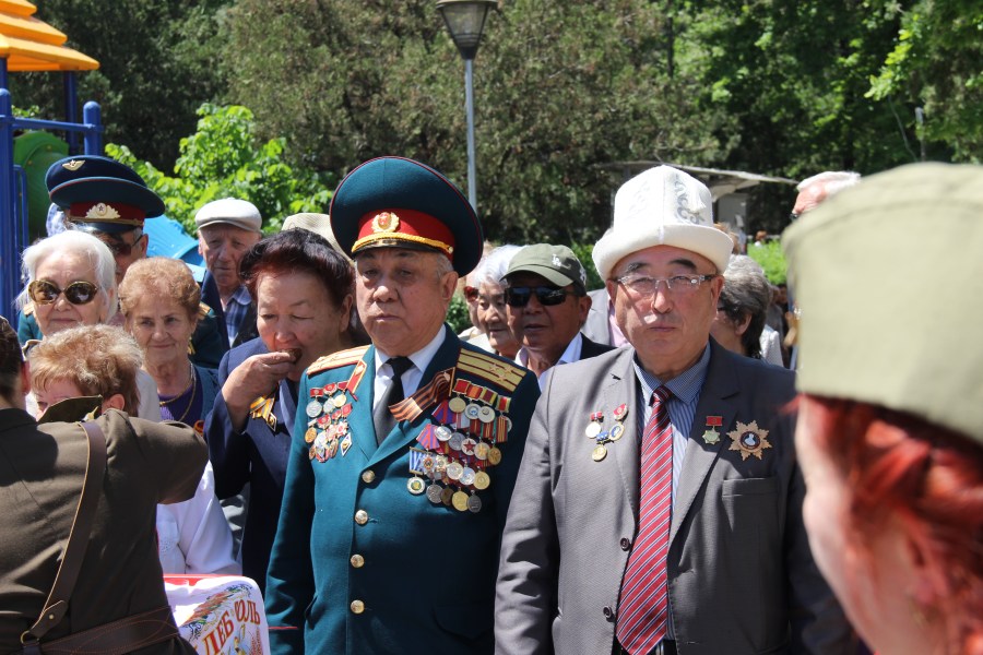 Тем временем возле здания Министерства иностранных дел КР собралась колонна из участников автопробега. Автомобили заполонили целую улицу: малогабаритные иномарки стояли рядом с большими внедорожниками, грузовики соседствовали с микроавтобусами — каких машин только не было! Большинство из них были украшены флагами и ленточками, а некоторые полностью тюнингованы в соответствии с тематикой праздника. Крыши нескольких авто были «увенчаны» «башнями» танка. Повсюду царила праздничная атмосфера. Несмотря на большое количество людей, было видно, что все присутствующие хорошо знают друг друга. Они казались огромной автомобильной семьей, которая собралась воедино с одной целью — почтить память ветеранов, отдавших свои жизни во имя светлого будущего.