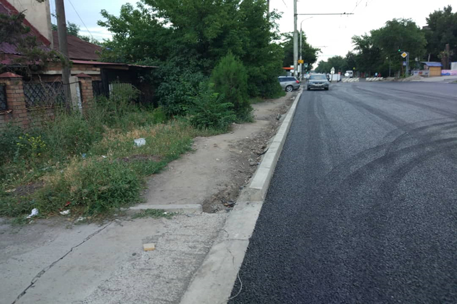 По улице Ахунбаева нет тротура – переходить дорогу опасно